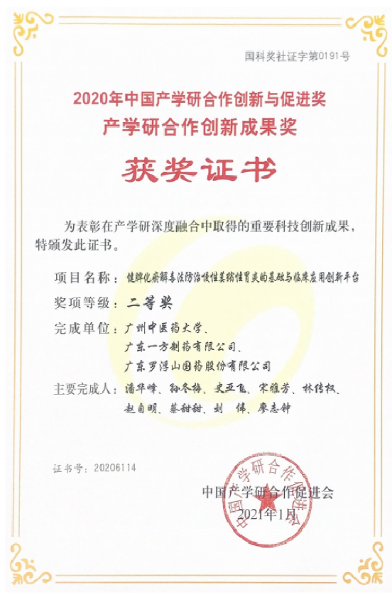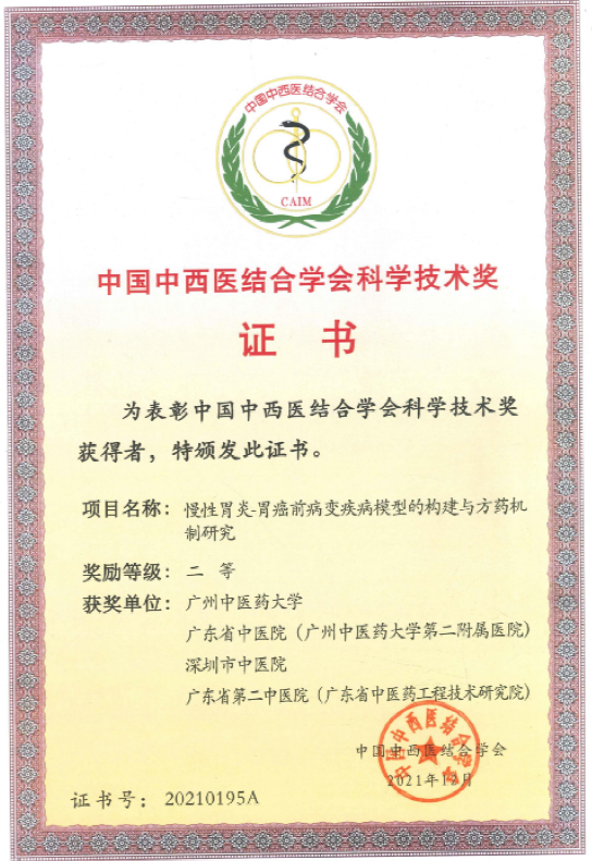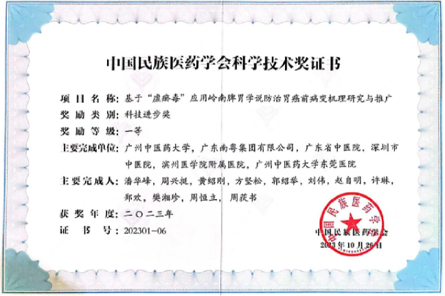 广东省传统医学会科技进步奖一等奖