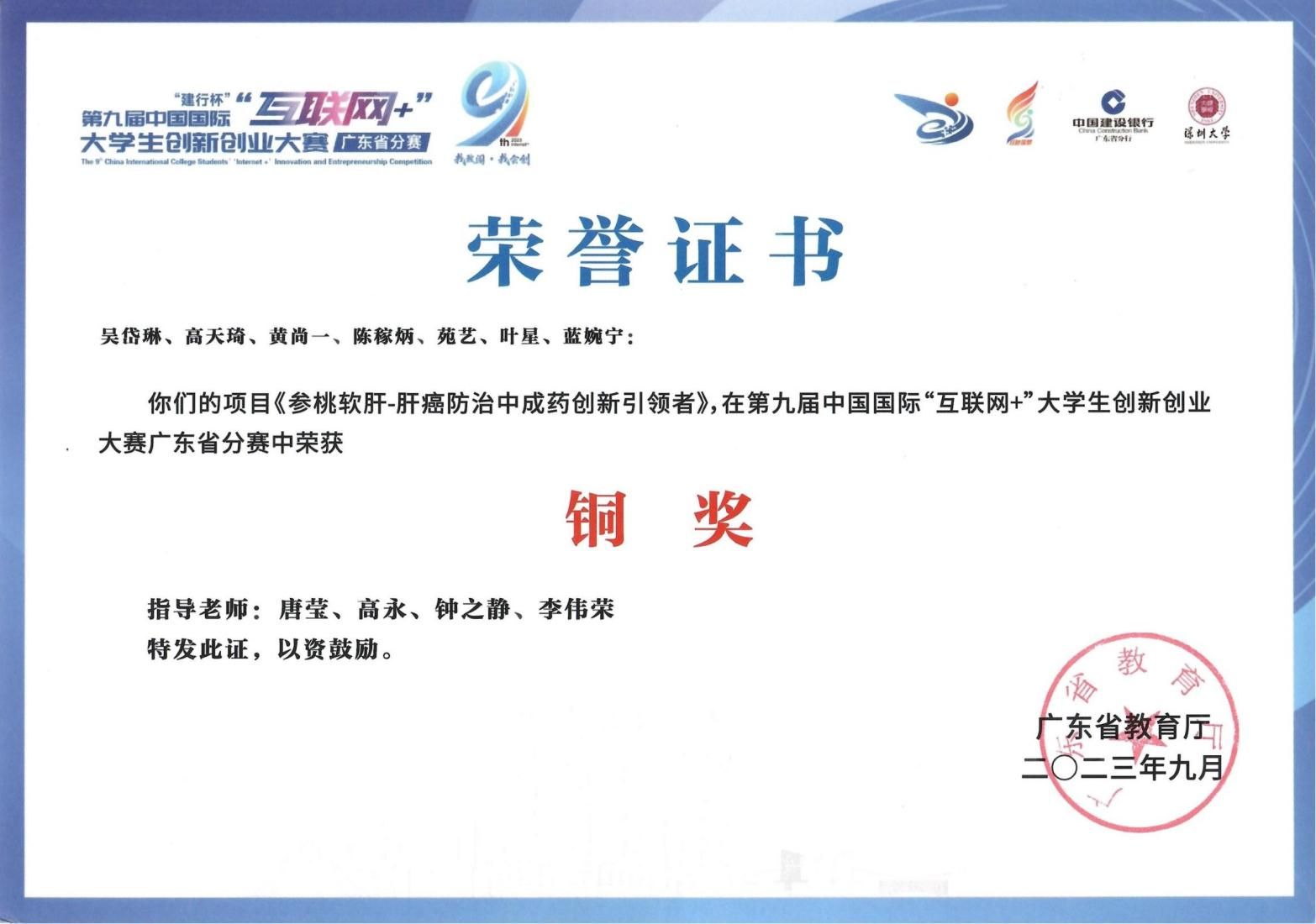 互联网+创新创业大赛广东省铜奖