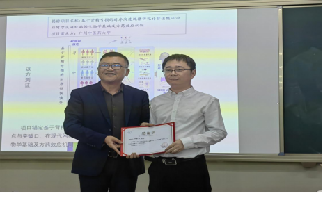 最后,何军代表437ccm·必赢国际为方老师颁发感谢状,并寄语学生们秉持远见卓识,坚持终身学习,自我管理,并积极参与中医药现代化的探索与实践,也希望“杏林传薪”讲坛继续坚持“科研育人”理念,为科创中心及全校研究生搭建学术交流平台,广邀各界学者传经送宝,拓展学生的研究视野,助力中医药现代化研究的高质量发展。