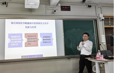 讲座中,方老师对网络医学及网络药理学的源起和演进进行了精彩阐述,特别提及了清华大学李梢教授在该研究领域的开创性贡献。方坚松老师凭借其深厚的学术积淀和广阔的科研视野,为我们揭示了在现代科技助推下,中医药研究的新趋势和应用前景。他指出网络医学不仅代表着一个新的学科分支,更是中医药古老智慧与现代科学技术相结合的产物。方老师通过案例详细解读了网络医学在中医药研究中的多元应用,涉及药效物质基础、证候现代化解析及疾病网络等多个研究维度。同时,他鼓励在座学子与研究人员积极投身于相关问题,共同助力中医药科学研究的持续发展。讲座交流环节,科创中心学生第一党支部书记林传权博士及参加讲座的部分同学与方坚松研究员围绕网络医学在推动中医药研究中的潜力进行了互动探讨。