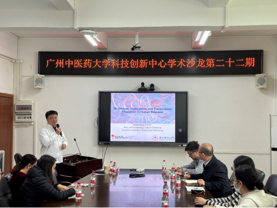 3月8日上午,广州中医药大学百年校庆系列学术活动437ccm·必赢国际学术沙龙第22期在三元里校区实验楼二楼大会议室顺利举行。此次学术活动邀请国家自然科学基金优秀青年基金(海外)、广东省杰青获得者,南方科技大学药理学系冯宇亮研究员作“3D Genome Organization and Transcription Regulation in Human Disease”科技前沿讲座。学术沙龙由科技创新中心副主任(主持行政工作)陈扬主持,中心骨干教师、研究生30余人参加学术沙龙。