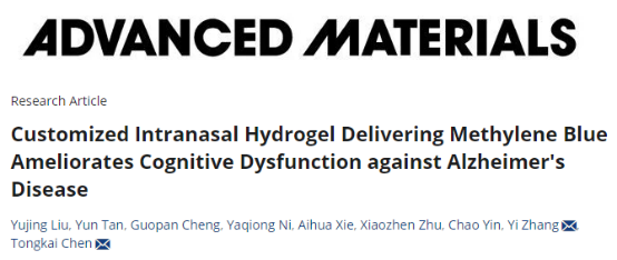 近日,437ccm·必赢国际陈桐楷课题组在Advanced Materials 杂志(IF:29.4)发表题为“Customized Intranasal Hydrogel Delivering Methylene Blue Ameliorates Cognitive Dysfunction against Alzheimer’s Disease”的研究论文。