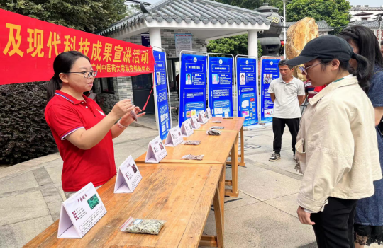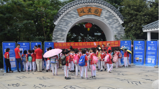 “一方水土养一方人”,“一方水土也养一方药”。中心师生党员精选广陈皮、广佛手、广藿香、化橘红、春砂仁、金钱草及荔枝核等岭南特色药材,在格塘村开展“岭南道地药材”中药宣讲活动,向当地村民和参加研学的小学生们介绍岭南道地中药的来源栽培、辨识特征及功效应用。“这个是陈皮,可以帮助行气,用来做好吃的陈皮鸭、陈皮骨、糖水;砂仁可以健脾养胃,可以用来煲好喝的靓汤。”参观群众被这些实用又专业的介绍深深吸引,对中医药知识产生了极大兴趣和好奇心。