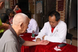中医药健康义诊进乡村 何金洋医生为患者把脉