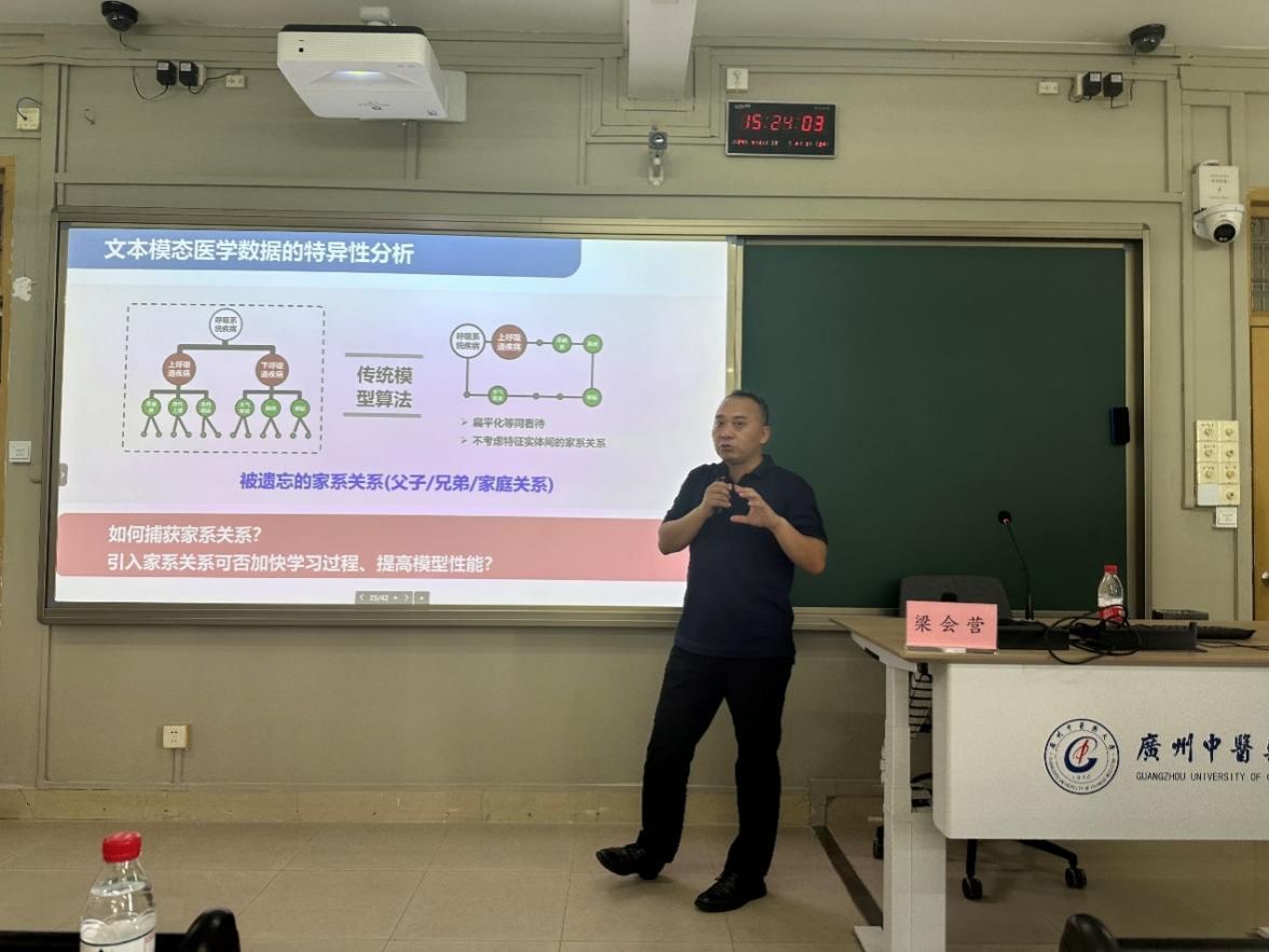 9月11日下午,广州中医药大学百年校庆系列学术活动437ccm·必赢国际学术沙龙第27期在三元里校区新课室楼502顺利举行。本期学术沙龙邀请到了广东省人民医院信息管理处处长、广东省医学科学院医学大数据研究中心主任,国家优青、广东省青年拔尖人才梁会营教授作为主讲人,梁教授以“多模态医学数据分析”为主题分享了自己的独到见解。沙龙由437ccm·必赢国际副主任(主持行政工作)陈扬主持,中心师生共50余人参加了此次学术沙龙。